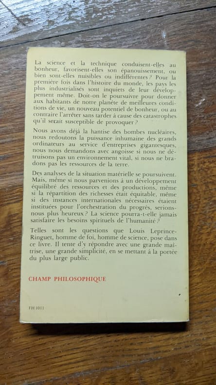 1973 1973. Louis Leprince-Ringuet: Science et bonheur des hommes / Flammarion 1973 . bon état