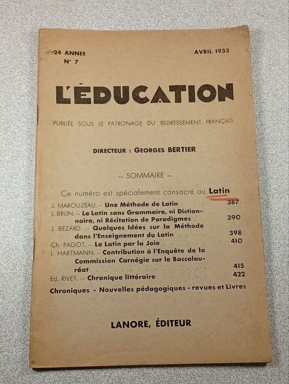 1ere édition, 1940 Contents, Chapitres : Préface du professeur Latarjet - Introduction - 1. Les principes de l'éducation physique dans l'histoire des institutions et des idées : L'Antiquité (Lers institutions pédagogiques de la Grèce antique - L'éducation physique dans ses rapports avec la religion grecque - La gymnastique et l'art grec - L'éducation physique et les philosophes - Rome et la fin du paganisme) - Les idées modernes (L'humanisme et la Renaissance - Jean-Jacques Rousseau et l'éducation naturelle - La fin du XVIIIe siècle et le début du XIXe siècle - Les problèmes de l'éducation physique moderne) - 2. Notions de psychologie appliquée à l'éducation physique : Les mouvements - Les états affectifs et les émotions - Les mobiles géographiques - L'éducation attrayante et les jeux - L'émotion esthétique et la gymnastique - Conditions générales de la vie morale - L'éducation de la volonté - L'éducation physique et les qualités sociales - L'âge scolaire - L'adaptation de la pédagogie aux individus - L'observation et la mesure des aptitudes individuelles - 3. Les méthodes et la pratique de l'éducation physique : La gymnastique suédoise - La gymnastique naturelle de Georges Hébert - La méthode française éclectique - Les conditions générales de l'éducation physique scolaire - Les formes particulières de l'éducation physique scolaire - L'éducation physique dans les programmes scolaires - L'éducation physique hors de l'école - Le scoutisme - Les devoirs professionnels infimes traces de pliures aux coins des plats de la couverture qui reste en bon état, intérieur frais et propre, papier à peine jauni, légère tache circulaire au bas de la première page, cela reste un bon exemplaire