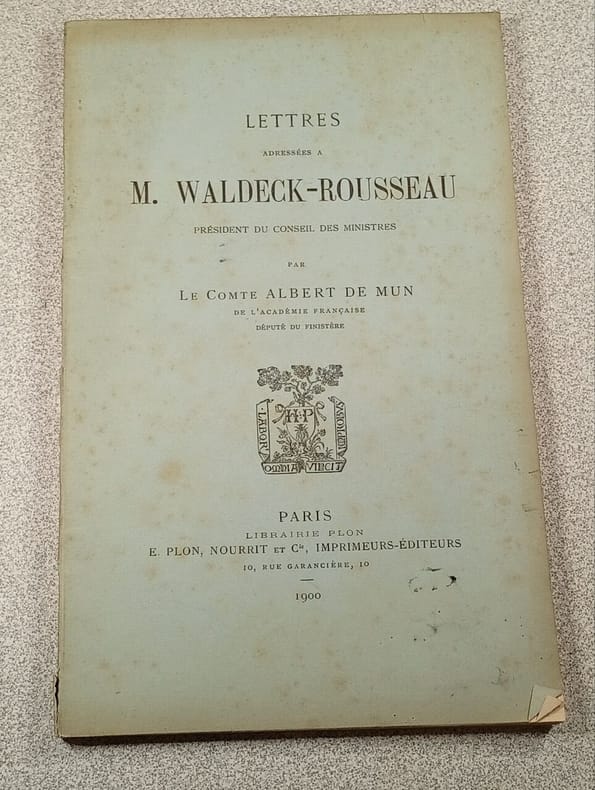 Par le Comte Albert de Mun, de l'Académie française, Député du Finistère. Classification Dewey : 944.081-IIIe République, 1870-1945