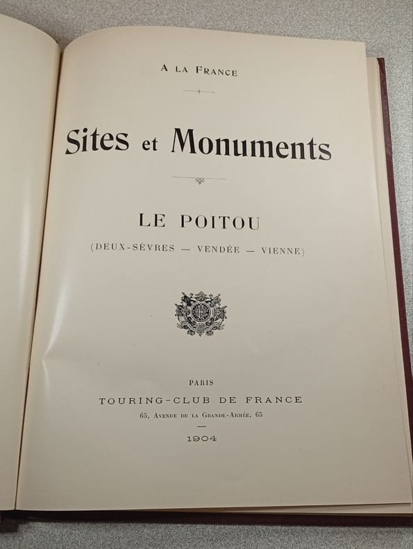 TOURING-CLUB DE FRANCE. 1904. In-4. Relié cuir dos-coins. Etat d'usage, Coins frottés, Dos frotté, Quelques rousseurs. 100 pages. Nombreuses illustrations en noir et blanc dans texte. + 3 cartes en couleurs dépliantes en fin d'ouvrage.. . . . Classification Dewey : 908.446-Régionalisme : Poitou-Charentes