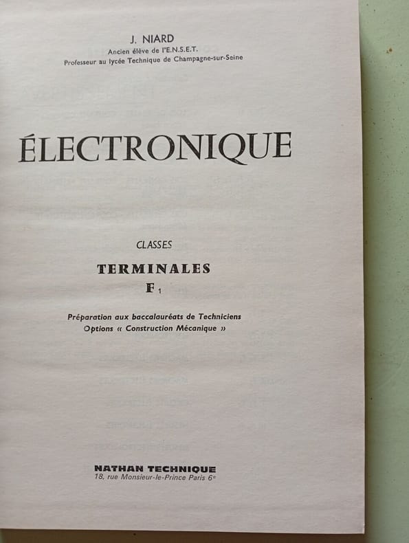 Collection J. Niard Cours d'électricité. Sommaire: Champ électrostatique et différence de potentiel; Les grandeurs électriques actives; Les résistors et leur résistance; Champs magnétiques dus à des courants ... Classification Dewey : 537-Electricité