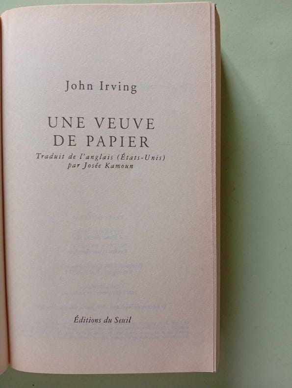 Editions du Seuil 1999 1999. John Irving: Une veuve de papier/ Editions du Seuil 1999 . John Irving: Une veuve de papier/ Editions du Seuil 1999