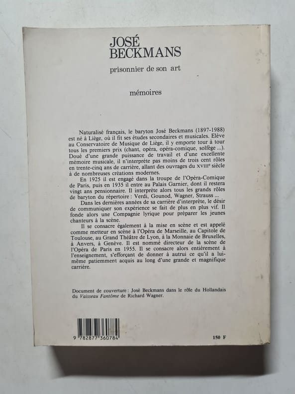 Librairie Séguiér Sans date. Mémoires autobiographiques de l'artiste José Beckmans écrits en collaboration avec Yvonne Dubois explorant sa vie et son rapport à son art