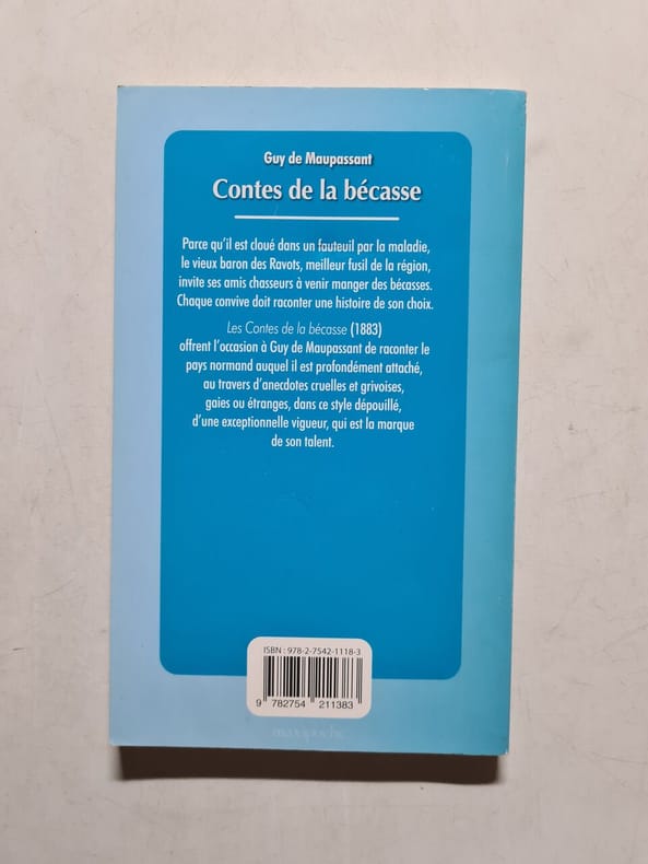 Edition originale «assez rare» (Clouzot), dont il n’a pas été fait de tirage sur grand papier, de ces fameuses nouvelles, sous la bonne couverture imprimée par Rouveyre et Blond. Carteret, II, 112; Clouzot, 197. «Il existe des exemplaires de l’édition originale avec des couvertures roses portant comme nom d’imprimeur Ch. Maréchal et J. Montorier sur le plat verso: la vraie couverture originale est celle qui porte dans le bas du plat verso: ‘Ed. Rouveyre et G. Blond, imprimeurs-éditeurs, rue de Richelieu, 98.’ Contient: La Bécasse – Ce Cochon de Morin – La Folle – Pierrot – Menuet – La Peur – Farce normande – Les Sabots – La Rampailleuse – En mer – Un Normand – Le Testament – Aux Champs – Un coq chanta – Un Fils – Saint Antoine – L’Aventure de Walter Schnaffs.» (Vicaire, 609) «Depuis qu’une paralysie des jambes l’immobilise dans son fauteuil, le grand chasseur que fut le baron des Ravots doit se contenter, pour satisfaire sa passion, de tirer de sa fenêtre sur les pigeons que son domestique, caché dans un massif, lâche à intervalles imprévus. A la saison des chasses, il réunit ses amis pour se faire conter leurs prouesses, puis, disposant sur le col d’une bouteille, une sorte de tourniquet sur lequel est épinglé le crâne d’une bécasse, il fait pivoter l’appareil, et le bec de l’oiseau désigne, en fin de course, celui des convives qui devra raconter une histoire. Ces récits n’ont pas entre eux d’autre lien que ce prétexte. Il y a, dans le nombre, de ‘bonne histoires’ assez cruelles, comme celle qui s’intitule ‘Ce cochon de Morin’ […] ‘La rempailleuse’, une des plus grandes pages d’amour que Maupassant ait écrites, est le récit d’une passion sans réponse qui obsède et nourrit toute une existence; depuis le jour où la petite rempailleuse a consolé un garçonnet de son âge en lui donnant les deux liards qu’il avait perdus, elle ne vit plus que pour revoir, avec la même émotion d’année en année, selon l’itinéraire des ambulants, ce garçon toujours indifférent qui accepte les minces économies de la petite et finira par accepter l’héritage qu’elle laisse à sa mort au seul homme qu’elle ait vu sur la terre. ‘Le testament’ est une autre page d’amour: les dernières volontés d’une épouse délaissée, et qui, d’outre-tombe, dénonce, témoigne et conclut en consacrant le seul amour de sa vie. Enfin, ‘Le Fils’, où s’accusent les remords des amours insouciantes, parce que les amours peuvent causer la mort et peuvent créer de la vie, sans nul proportion ni correspondance avec le caprice d’un moment». (Dictionnaire des Œuvres, II, 60). Superbe exemplaire en parfaite condition, non rogné, dans une fine reliure de Tchékéroul avec les couvertures roses et le dos conservés. Provenance: ex-libris gravé Marcel de Merre et ex-libris Robert Desprechins dessiné par Cocteau.