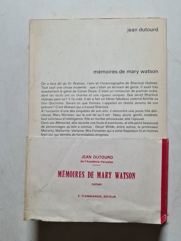 Flammarion 1980, in-8 broché, 284 p. (petites traces sans gravité au quatrième de couverture, sinon très bon état) Première édition. Les mémoires imaginaires de la femme du docteur Watson, sans qui, soyons clairs, Sherlock Holmes n'aurait jamais existé… Un bijou qui ravira tous les holmésiens.