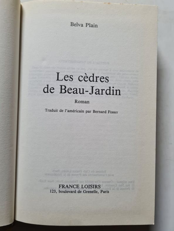 1987 1987. Belva Plain: Les cèdres de Beau-Jardin / J'ai lu 1987