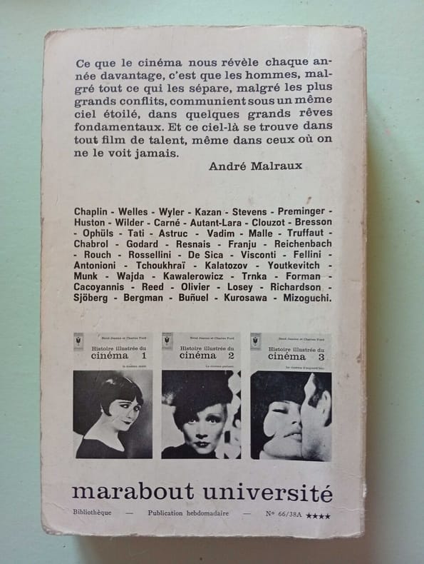 BIBLIOTHEQUE MARABOUT UNIVERSITE. 1966. In-12. Broché. Etat d'usage, Couv. légèrement passée, Dos satisfaisant, Intérieur frais. 317 + 317 pages - Nombreuses photos en noir et blanc in et hors texte - 1ers plats illustrés d'une photo-portrait en noir et blanc.. . . . Classification Dewey : 791.43-Cinéma