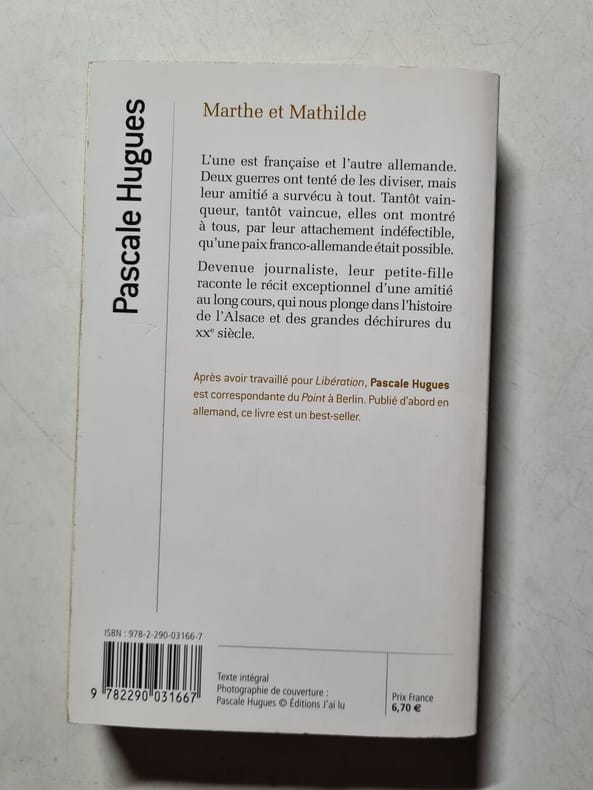 “Marthe et Mathilde” est un récit biographique écrit par la journaliste Pascale Hugues, petite-fille des deux héroïnes, qui a en particulier travaillé pour le journal Libération et est correspondante de l'hebdomadaire Le Point à Berlin. Son intérêt réside dans le fait qu'à travers la vie de la Française Marthe Réling et de l'Allemande Mathilde Goerke, il témoigne de l'histoire mouvementée de l'Alsace pendant une centaine d'années entre la fin du XIXe siècle et la fin du XXe siècle puisqu'elles sont mortes toutes les deux en 2001, presque centenaires.