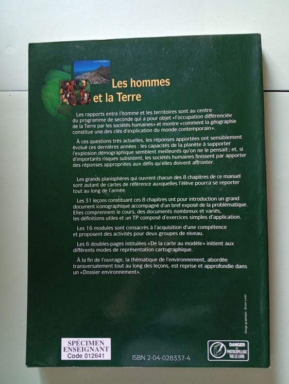 Sommaire : 1939 1945 la seconde guerre mondiale - les droits de l'homme bafoués - l'évolution de l'europe - l'évolution des forces politiques - la croissance et le développement depuis 1945 - la france dans le monde d'aujourd'hui - l'homme occupe sa planéte - l'homme dans les milieux polaires - la terre comme système - l'organisation des espaces agricoles - l'organisations des espaces urbanisés - l'organisations des espaces de loisirs etc... Classification Dewey : 372.89-Livre scolaire : histoire / géographie
