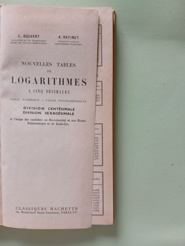 Table numérique ; Tables trigonométriques ; Division Centésimale ; Division Sexagésinale. A l'usage des candidats au Baccalauréat et aux Ecoles Polytechniques et de Saint-Cyr