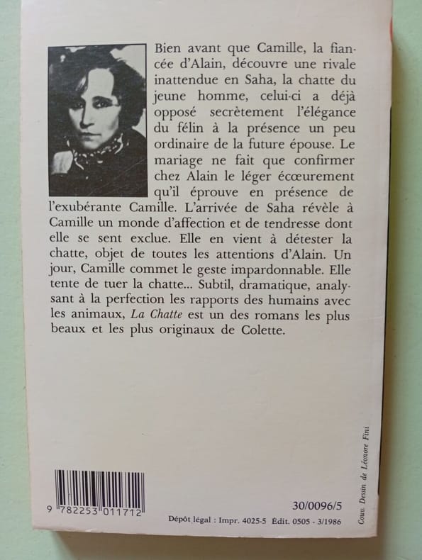 Roman de Colette, paru en feuilleton dans Marianne du 12 avril au 7 juin 1933, puis publié chez Grasset dans la collection Pour mon plaisir dès le 12 juin 1933. Relate la passion d'un jeune homme, Alain, pour son animal de compagnie, Saha, une fascinante chatte de la race des Chartreux. Jeune marié, il reste impénétrable aux yeux de sa femme, Camille, qui se prend de jalousie pour la chatte, la favorite insurpassable. Dès lors, pour l'amoureuse délaissée, aucun procédé ne sera trop brutal pour écarter l'animal de son chemin. Alain semble indifférent au charme de Camille et reste fidèle à sa chatte.