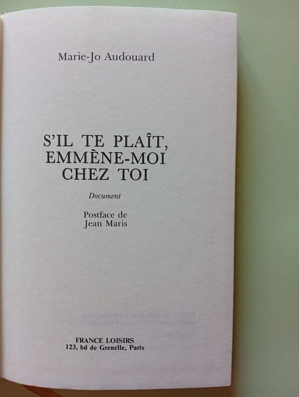 1992 1992. Marie-Jo Audouard: S'il te plaît emmène-moi chez toi/ France Loisirs 1992 . Marie-Jo Audouard: S'il te plaît emmène-moi chez toi/ France Loisirs 1992