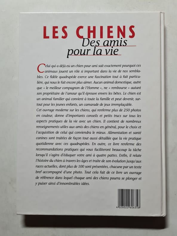 Sommaire : des quadrupèdes fascinants, le chien dans le règne animal, du loup au chien, comment choisir son chien, l'achat d'un chien, soins et entretien, la bonne alimentation, la santé du chien, vivre avec un chien, les races de chiens. Classification Dewey : 636.7-Chiens