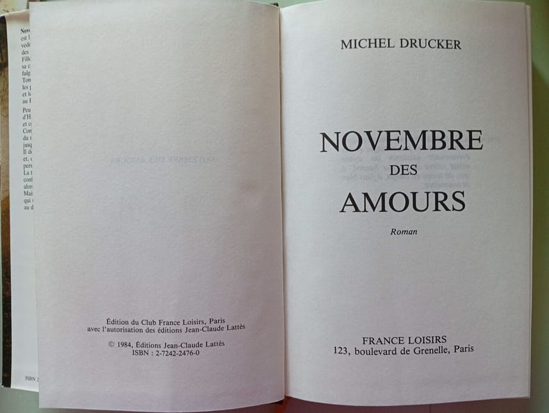 Le Livre de Poche 1987 1987. Michel Drucker - Novembre des amours / Le Livre de Poche 1987