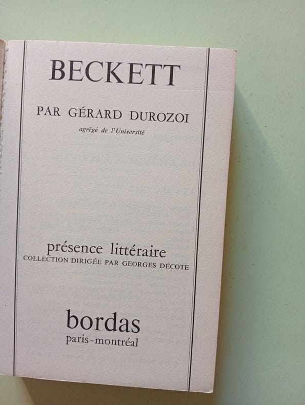 Edition originale du mémoire de maîtrise présenté par Janine Brun sous la direction de Robert Mauzi. Agréable exemplaire. Précieux envoi autographe daté et signé de Samuel Beckett à Janine Brun : "Pour Janine Brun, mes meilleurs voeux. Samuel Beckett. Paris Février 1981." - Photographies et détails sur www.Edition-Originale.com -