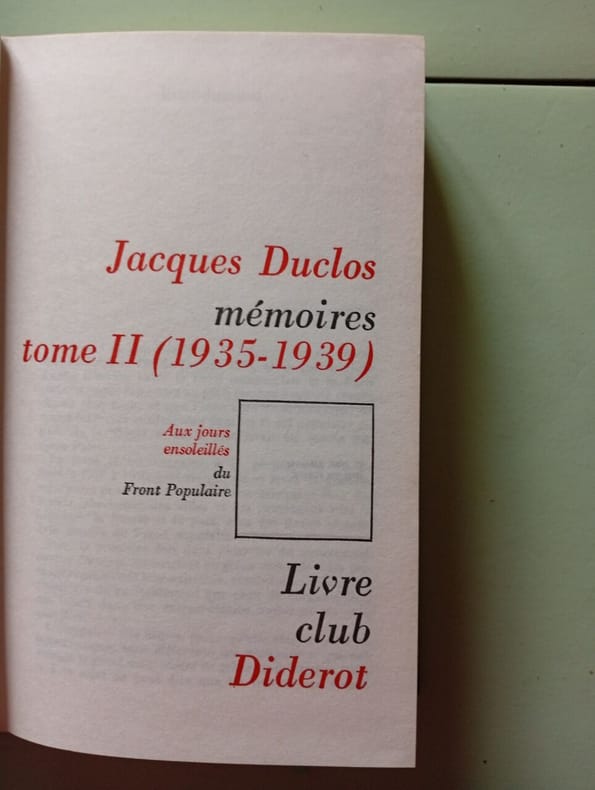 Classification Dewey : 848-Ecrits divers, citations, journaux intimes, souvenirs, mémoires