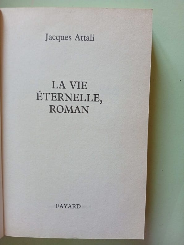 Editions Fayard 1989 1989. Jacques Attali: La vie éternelle roman/ Editions Fayard 1989 . Jacques Attali: La vie éternelle roman/ Editions Fayard 1989