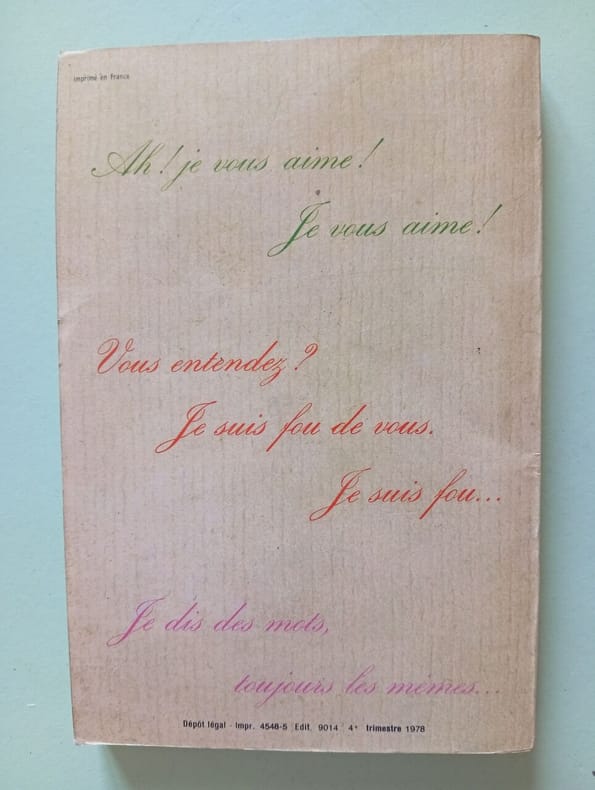 volume in-8, 20x13, 164 pages, sous couvertures rempliées, petites usures d'usage, bel état. Numéroté sur papier pur fil Outhenin Chalandre, 294/2200 Flammarion, 1931 Toi et moi Si tu m'aimais, et si je t'aimais, comme je t'aimerais ! "Paul Géraldy (1885-1983), poète français, est l'auteur de vers intimistes. Toi et moi, paru pour la première fois en 1913, a connu un succès considérable. Aujourd'hui encore, il demeure le livre de chevet de tous les amoureux." "Toi et Moi" est un recueil de poèmes de l'écrivain français Paul Géraldy, publié en 1912. Paul Géraldy, de son vrai nom Paul Lefèvre, était un poète et dramaturge français. "Toi et Moi" est considéré comme l'œuvre la plus célèbre de Paul Géraldy. Il s'agit d'un recueil de poèmes dédié à l'amour et aux relations amoureuses. Les poèmes explorent les différentes facettes de l'amour, depuis les premiers émois jusqu'aux joies et aux peines de la vie à deux. Les poèmes de "Toi et Moi" sont souvent empreints de sensualité et de romantisme. Ils expriment les sentiments intenses ressentis dans une relation amoureuse et explorent les thèmes de l'intimité, de la passion et de la complicité. Paul Géraldy était connu pour son style élégant et émotionnel. Ses poèmes sont empreints de lyrisme et de délicatesse, capturant les émotions les plus subtiles de l'amour. "Toi et Moi" a connu un grand succès à sa sortie et a été très apprécié par le public. Les poèmes de ce recueil ont souvent été cités et repris dans d'autres œuvres littéraires, et certains sont même devenus des classiques de la poésie amoureuse française. "Toi et Moi" reste une référence dans le domaine de la poésie amoureuse et continue d'être lu et apprécié par les amateurs de poésie romantique. ref/1