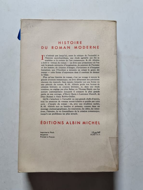 Alberes, R M. Histoire du roman moderne. In English /Alberes, R M. Histoire du roman moderne. In English .Paris 1962. In French. Albert. The History of the Modern Novel. We have thousands of titles and often several copies of each title may be available. Please feel free to contact us for a detailed description of the copies available. SKUalb86a8cbdaaf2cda24