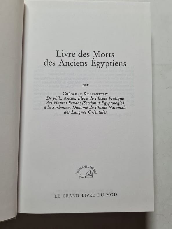 nombreuses illustrations dans le texte en noir et blanc 1ere édition de cette traduction en français, 1954 Contents, Chapitres : Le Livre des morts des Anciens Égyptiens a pour véritable titre, à l'époque de l'Égypte antique, Livre pour sortir au jour. Le « jour » en question est celui des vivants, mais aussi de tout principe lumineux s'opposant aux ténèbres, à l'oubli, à l'anéantissement et à la mort. Dans cette perspective, le défunt égyptien cherche à voyager dans la barque du dieu soleil Rê et à traverser le royaume d'Osiris (version nocturne du Soleil diurne en cours de régénération). Il s'agit de rouleaux de papyrus, recouverts de formules funéraires, placés à proximité de la momie ou contre celle-ci, dans les bandelettes. Ces différents exemplaires du Livre des Morts ne sont pas tous identiques, car le bénéficiaire choisit les formules qui lui conviennent, probablement en fonction de ce qu'il peut s'offrir car ces manuscrits représentent un investissement non négligeable. Certains peuvent donc être courts, alors que d'autres reproduisent l'ensemble, ou presque, du corpus. En 1842, l'égyptologue allemand Karl Richard Lepsius appela Todtenbuch (Livre des morts) un papyrus conservé au Musée égyptologique de Turin et dont il a effectué une première traduction. Ce nom est ensuite resté bien que dans la littérature égyptologique moderne on rencontre souvent la juxtaposition des deux titres, à savoir « Livre des Morts - Sortir au jour ». (source : Wikipedia) jaquette à peine jaunie en très bon état, infime petite déchirure sur le haut du mors du plat supérieur (couverture originale en très bon état, protégée par la jaquette papier illustrée), intérieur frais et propre, papier à peine jauni, quelques coins de pages cornés sans gravité, cela reste un bel exemplaire de l'édition originale sur papier ordinaire de cette traduction du Livre des Morts, la lettre-préface de Drioton est datée de 1953 - NB : grand format de la 1ere édition de 1954 en très bon état, il ne s'agit pas de la réédition en poche chez Stock