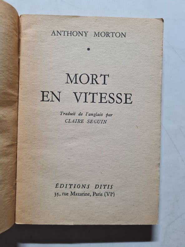 Collection la Chouette,romans policiers et d'action publiés sous la direction de Frédéric Ditis. Traduit de l'anglais par Claire Seguin. Classification Dewey : 820-Littératures anglaise et anglo-saxonne