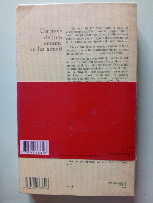 Le livre de poche 1988 403 pages poche. 1988. broché. 403 pages. Un mois de juin comme on les aimait est l'histoire d'une amitié qui se noue entre deux adolescents dans le Paris des années 30 et va se poursuivre dans l'histoire mouvementée de la France. Une amitié difficile parce qu'elle réunit deux êtres que tout sépare : l'ascendance le milieu social la qualité intérieure. D'un côté le narrateur sans caractère ni principes. De l'autre Simon Loeb qui est la grâce et l'intelligence mêmes. L'un n'est pas juif l'autre l'est. Tantôt romancier des destins particuliers et tantôt chroniqueur des grands événements qui font et défont la France de 1936 à 1946 tantôt jouant des secrets du coeur et tantôt rapportant les tragédies collectives allant sans cesse de ses héros aux foules et aux pulsions qui font l'Histoire Jean Ferniot a construit un très grand roman