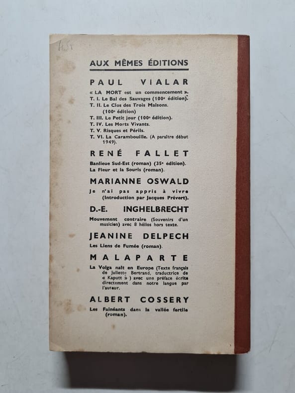 DOMAT. 30 nov. 1946. In-12. Relié. Etat d'usage, Couv. défraîchie, Mors fendus, Intérieur acceptable. 332 pages. Reliure de bibliothèque : légèrement déboité, dos renforcé par une bande papier, code sur la coiffe en-tête et tampons sur la page de titre. Coins et coupes des plats de couverture, frottés.. . . . Classification Dewey : 840-Littératures des langues romanes. Littérature française
