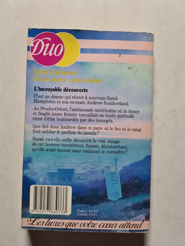 HARLEQUIN DUO SERIE HARMONIE n° 73. 1985. In-16. Broché. Bon état, Couv. convenable, Dos satisfaisant, Intérieur frais. 216 pages.. . . . Classification Dewey : 843.085-Le roman sentimental