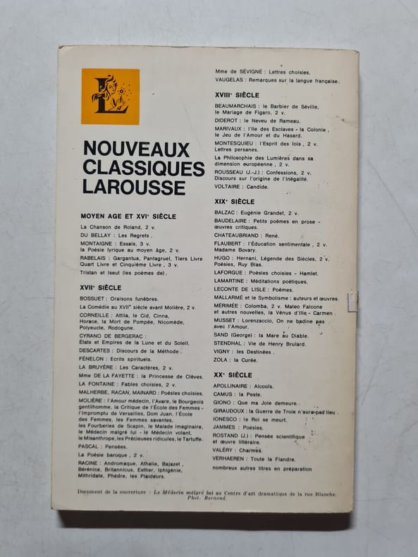 Editions Larousse 1971 1971. Molière: le médecin malgré lui le médecin volant/ Nouveaux Classique Larousse 1971 . Molière: le médecin malgré lui le médecin volant/ Nouveaux Classique Larousse 1971
