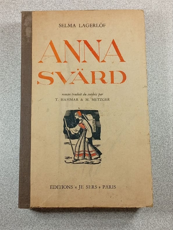 Paris, Éditions Je Sers, 1936 ; in-12, 325 pp., reliure demi-chagrin brun, dos à 5 nerfs. Roman traduit du suédois par T. Hammar et M. Metzger.