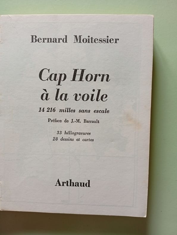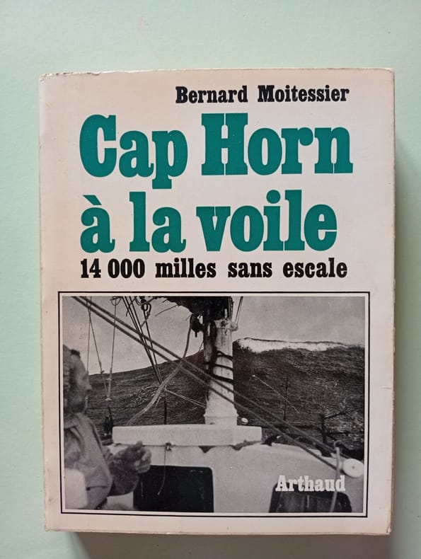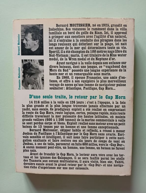 Paris Arthaud 1969 In 8 Collection " Mer " . Illustré de 33 héliogravures et de 28 dessins et cartes . Il part avec sa compagne pour un très long voyage sans escale ( 126 jours ) , du Pacifique à l'Atlantique par le Cap horn à bord de Joshua . Marine et Voile . - 302 p. , 650 gr.