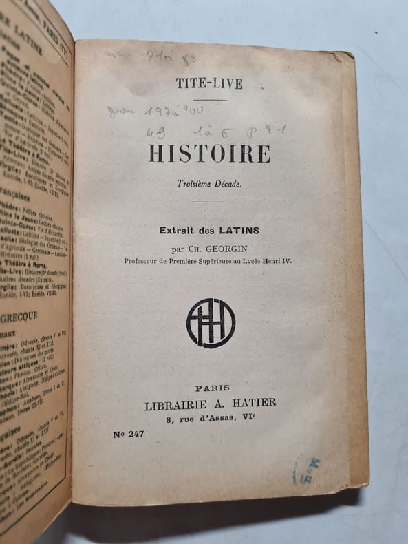 Editions Hatier 1947 1947. Tite Live : Histoire Troisième décade / Librarie Hatier 1947 LBN20