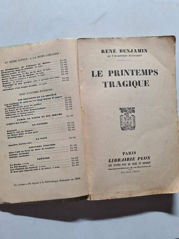 LIBRAIRIE PLON 1945 1945. René Benjamin: Le printemps tragique/ Librairie Plon 1945
