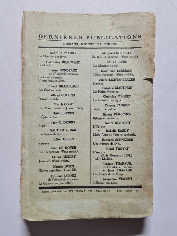 Plon 1941 in12. 1941. Broché.