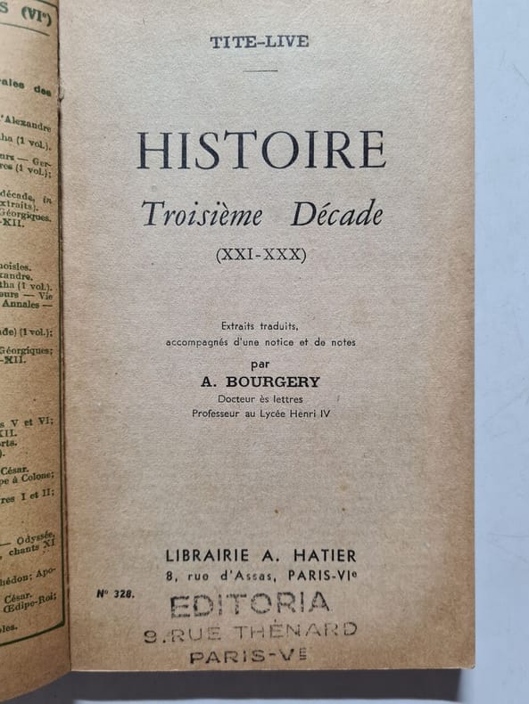 Editions Hatier 1947 1947. Tite Live : Histoire Troisième décade / Librarie Hatier 1947 LBN20