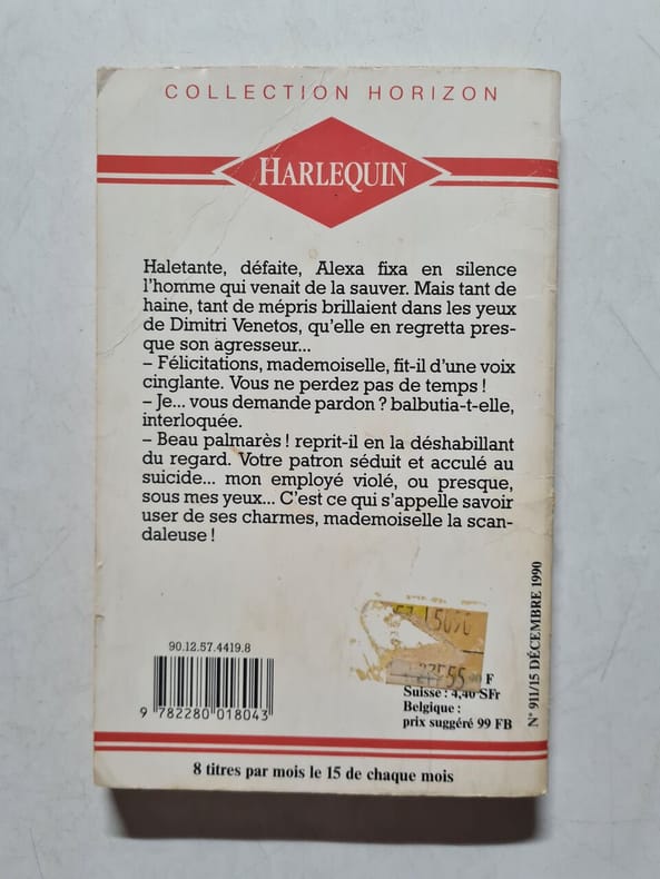 COLLECTION HARLEQUIN COLLECTION HORIZON N° 911. 1990. In-12. Broché. Etat d'usage, 2ème plat abîmé, Dos satisfaisant, Intérieur frais. 153 pages.. . . . Classification Dewey : 820-Littératures anglaise et anglo-saxonne