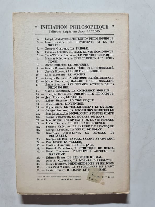 Paris, PUF, Initiation Philosophique, 1959; in-12 broché, 134 pp. BON ETAT