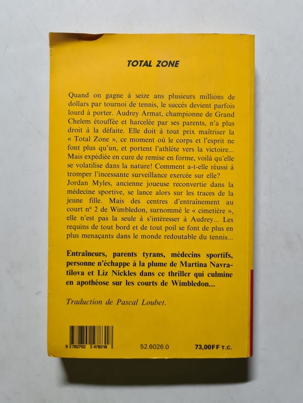 broché -13,5x21,5 - 329 pp - 1995 - éditions DU MASQUE, Paris.Le triller de la championne Martina NAVRATILOVA.Traduction de Pascal LOUBET.