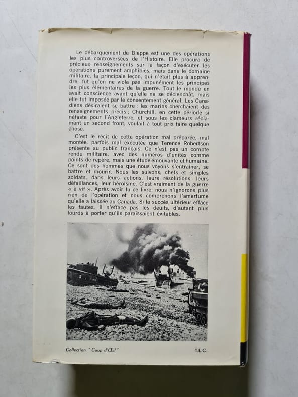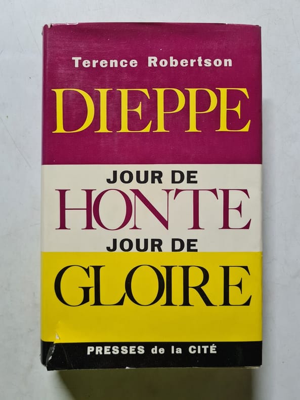 État : Très bon état - Année : 1963 - Format : in 8° - Pages : 380pp - Editeur : Presses de la Cité - Lieu d'édition : Paris - Type : Cartonnage toile éditeur, jaquette illustrée - Commander rapidement : https://www.bons-livres.fr/livre/terence-robertson/4861-dieppe-jour-de-honte-jour-de-gloire?lrb