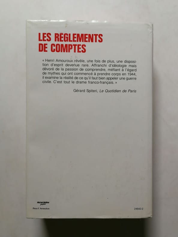 Les Allemands avaient, en France, des collaborateurs de plume comme des complices dans le crime. A l'heure où l'armée allemande bat en retraite, la justice est parfois sommaire, comme l'indique le titre, “Les Règlements de comptes”, du premier tome de “La Grande Histoire des Français après l'Occupation”. Puis vient le rétablissement du pouvoir central avec le général de Gaulle, qui se rend en septembre 1944 à Lyon, Marseille, Toulouse, Bordeaux, dans des régions dominées par les FTP et le parti communiste. Cependant la guerre se poursuit sur le territoire national, mais les Français sont moins flattés par les succès de leurs soldats menés par de Lattre et Leclerc qu'inquiets des difficultés de leur vie quotidienne, accrues par les destructions d'une bataille intense et la paralysie des communications, alors que la population attendait de la Libération la fin de ses malheurs. L'année 1945, objet du dernier tome, “La page n'est pas encore tournée”, est riche en événements d'importance nationale : victoire des Alliés, retour des déportés et des prisonniers, procès du maréchal Pétain et de Pierre Laval, référendum constitutionnel, élections législatives. Mais de Gaulle, irrité par les attaques ou les réticences des partis politiques, démissionne en janvier 1946. Avec la retraite du Général, le rideau était-il tombé sur le grand drame qui avait débuté en 1940 ? Non. Un demi-siècle plus tard, les passions restent vives autour de problèmes sans réponses claires ou définitives, et les débats demeurent souvent simplistes ou simplificateurs. Toutefois les confidences de milliers de lecteurs et de lectrices à Henri Amouroux permettent de mieux comprendre les Français victimes et héros de cette période douloureuse.