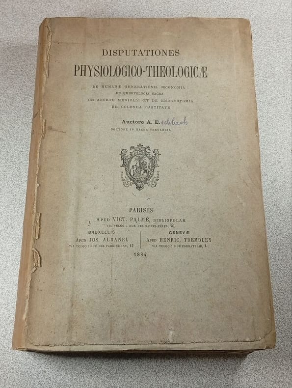 Rome/ Paris, Desclée/ Lecoffre s.d. 5 disputations published in 3 parts (bound in one physical volume), xiv,220,[22] + 262,[14] + 119,[2] pp., 3rd enlarged edition, bound in hardcover binding (marbled boards, spine in black cloth with gilt title), 25cm., text in Latin, stamp on titlepages, text and interior are clean and bright, good condition, weight: 1.6kg., R106551