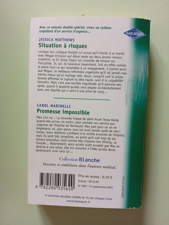 COLLECTION HARLEQUIN SERIE BLANCHE N° 662 2003 2003. Broché.