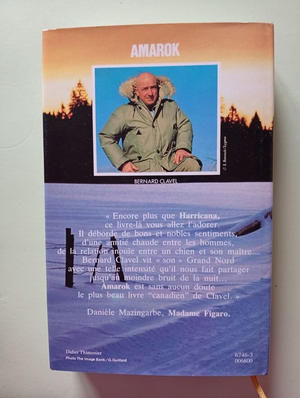 Albin Michel 1990 266 pages 14 6cm x 22 5cm x 2 1cm. 1990. souple + jaquette. 266 pages. Bernard Clavel est de la race des grands conteurs du Nord celle des Jack London et James Oliver Curwood. Il nous donne avec Amarok un des grands romans de ce pays perdu.Il écrit avec l'ardeur des hommes de ces forêts profondes de ces lacs et de ces plaines infinies. Il sait l'urgence de cogner sur l'injustice et le malheur. Il traverse les déserts la tête pleine à craquer d'espérances et de rêves. Il nous porte dans l'aventure avec cette intégrité de bête sauvage qui habite ses personnages et qu'illustre si bien Amarok chien au sang de loup dont nous n'oublierons plus le regard déchirant animal fabuleux d'intelligence de générosité et de dévouement qui fera tout pour sauver son maître et le jeune trappeur qu'il protège de poursuivants impitoyables.Amarok c'est l'histoire bouleversante d'une fuite d'une traque dans les terres gelées les neiges et les glaces d'Abitibi jusqu'aux limites du Grand Nord jusqu'à la banquise