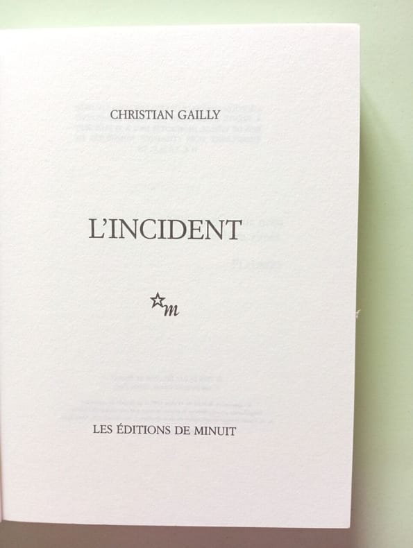Editions de Minuit 2009 2009. Christian Gailly: L'incident/ Les editions de Minuit 2009