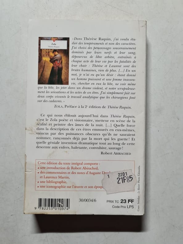 Paris, Bibliothèque charpentier , 1906; in-4, 557/252 pp., cartonnage de l'éditeur. Oeuvres complètes illustées de émile Zola T 1 comprend les titres Thérése Raquin / madeleine Férat.