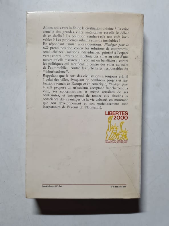 Pour un urbanisme qui reconcilie la vie et la ville. Format moyen, couverture souple. 252 pages. Bon état 1972 Robert Laffont. Libertes 2000