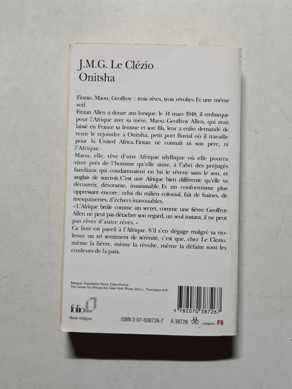Onitsha est le nom d'un petit port fluvial établi sur le Niger, en Afrique, lieu central du voyage initiatique que va accomplir Fintan, un jeune garçon de douze ans. Embarqué à bord du bateau Surabaya en compagnie de sa mère Maria Luisa, dite Maou, le 13 mars 1948, ils veulent l'une et l'autre rejoindre son époux et père, Geoffroy. Une narration en partie autobiographique, Le Clézio ayant, à l'âge de six ans, effectué le trajet inverse. Avec la guerre du Biafra (deux millions victimes) et les décolonisations en toile de fond. En lisant Le Coeur des ténèbres de Conrad, Le Clézio y puisa sans doute beaucoup pour écrire cette merveilleuse mosaïque, cette représentation mythologique et historique d'une Afrique de l'Ouest qui réunit le rêve et la révolte. L'histoire d'un exil personnel et d'une fuite universelle, à l'instar de son personnage qui remonte le temps, le narrateur à la recherche de la cité de Meroë, Le Clézio aux sources d'un royaume disparu : le paradis perdu de l'enfance.