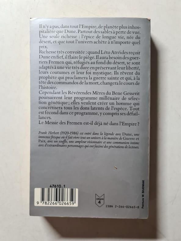 Presses Pocket Sans date. Dune écrit par Frank Herbert est un roman de science-fiction se déroulant sur la planète désertique Arrakis seule source de l'épice une substance vitale pour l'Empire. Il suit le jeune Paul Atréides dont la famille prend le contrôle d'Arrakis déclenchant une lutte de pouvoir impliquant des factions politiques des traditions mystiques et la survie dans un environnement hostile