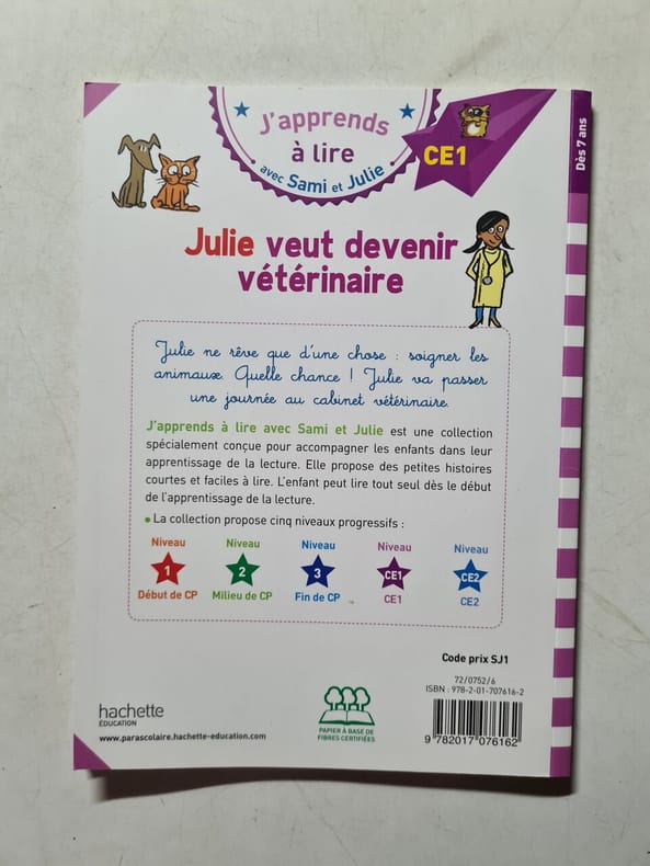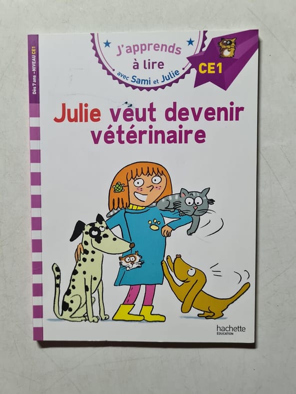 Hachette Éducation Sans date. Julie une petite fille passionnée par les animaux réalise son rêve en passant une journée dans un cabinet vétérinaire. Cette histoire fait partie de la collection éducative 'J'apprends à lire avec Sami et Julie' conçue pour accompagner les enfants dans l'apprentissage de la lecture