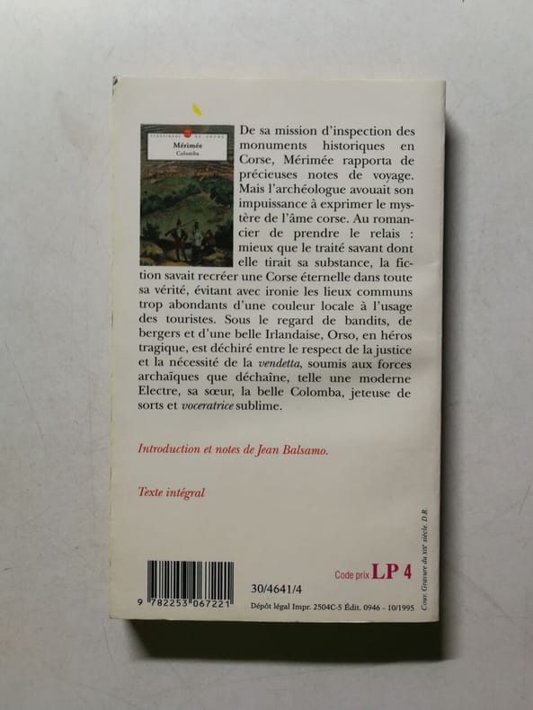 Calmann-Lévy in12. Sans date. Broché. Colomba est une nouvelle de Prosper Mérimée publiée en 1840 dont l'intrigue se déroule en Corse. Elle met en scène Colomba une jeune Corse qui pousse son frère Orso de retour au pays à venger l'assassinat de leur père présumé être l'œuvre de la famille Barricini. L'œuvre explore le conflit entre l'atavisme de la vendetta et les valeurs modernes ainsi que les tensions culturelles